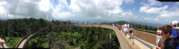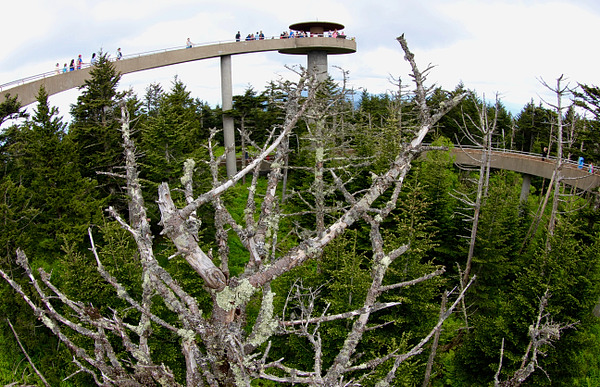 Clingmans Dome (or Clingman's Dome) is a mountain in the Great Smoky Mountains of Tennessee and North Carolina, in the southeastern United States. At an elevation of 6,643 feet (2,025 m), it is the highest mountain in the Smokies, the highest point in the state of Tennessee, and the highest point along the 2,174-mile (3,499 km) Appalachian Trail. It is also the third highest point in all of Eastern North America, after the nearby Mount Mitchell (6,684 feet or 2,037 metres) and Mount Craig (6,647 feet or 2,026 metres). Clingmans Dome has two subpeaks: 6,560-foot (2,000 m) Mount Buckley to the west and 6,400-foot (1,950 m) Mount Love to the east. The headwaters of several substantial streams are located on the slopes of Clingmans Dome, namely Little River on the north slope, and Forney Creek…