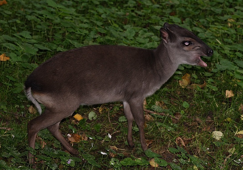 The blue duiker (Philantomba monticola) is a small antelope found in central, southern and eastern Africa. It is the smallest duiker. The species was first described by Swedish naturalist Carl Peter Thunberg in 1789. 12 subspecies are identified. The blue duiker reaches 32–41 centimetres (13–16 in) at the shoulder and weighs 3.5–9 kilograms (7.7–19.8 lb). Sexually dimorphic, the females are slightly larger than the males. The dark tail measures slightly above 10 centimetres (3.9 in). It has short, spiky horns, around 5 centimetres (2.0 in) long and hidden in hair tufts. The subspecies show a great degree of variation in their colouration. The blue duiker bears a significant resemblance to Maxwell's duiker. Activity is diurnal (limited to daytime). Secretive and cautious, the blue duiker…