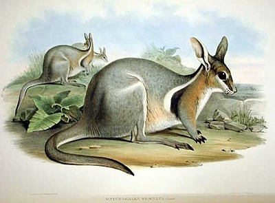 Nail-tail wallaby refers to Onychogalea, a genus describing three species of macropods, all of which are found in Australia. Related to kangaroos and wallabies, they are smaller sized species distinguished by a horny spur at the end of their tail. The northern nail-tail wallaby is still common in the northern part of Australia, the crescent nail-tail is now extinct, and the bridled nail-tail is considered rare and endangered, with probably fewer than 1100 mature individuals in the wild. Nail-tail wallabies are smaller than many other wallabies.