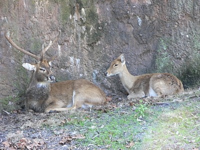 Rucervus is a genus of deer from India, Nepal, Indochina, and the Chinese island of Hainan. The only extant representative, the barasingha (R. duvaucelii), is threatened by habitat loss and hunting, and another species (R. schomburgki) became extinct in 1938. The species of the genus Rucervus are characterized by a specific antler structure: its basal ramification is often supplemented with an additional small prong, the middle tine is never present, while the crown tines are inserted on the posterior side of the beam and may be bifurcated or fused into a small palmation.