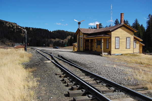 Cumbres Pass, elevation 10,022 ft (3,055 m), is a mountain pass in the San Juan Mountains in Colorado, United States. The pass is traversed by State Highway 17 and the Cumbres and Toltec Scenic Railroad. The highway has a moderate 5.8% approach on the north side and a gentler, 4% approach on the south side. It is rarely closed in winter and does not normally cause problems for vehicles, since the road is not a major through highway. The railroad line was built in the early 1880s by the Denver & Rio Grande Railroad as part of their San Juan Extension line from Alamosa, Colorado to Durango, Colorado. The railroad has a steep (for a railroad) 4% grade approaching from the west, so additional helper locomotives were usually run (and often still are) on trains from Chama to Cumbres Pass. The…