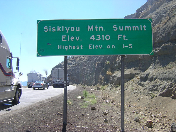 Siskiyou Summit (also Siskiyou Mtn. Summit; also referred to as Siskiyou Pass) is a summit (high point) on Interstate 5 (I-5) in the U.S. state of Oregon. It is distinct from Siskiyou Pass, which is a nearby, historical mountain pass. Siskiyou Summit is situated in the Siskiyou Mountains, approximately 4 miles (6.4 km) north of the California border. At 4,310 feet (1,310 m), it is the highest point on Interstate 5. When the highway was rebuilt on its current alignment, road cutting lowered the elevation of the summit by 49 feet (15 m).