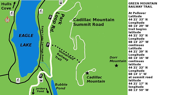Before the summit road was built people reached the summit by way of horse drawn buckboards or by way of a cog train that operated along one side of the mountain. The train was run by the Green Mountain Railway Company, Cadillac Mountain being named Green Mountain in those days. The railroad company had big plans to build other cog train tracks up other mountain sides on Mount Desert Island but that never came to be after the company went bankrupt.