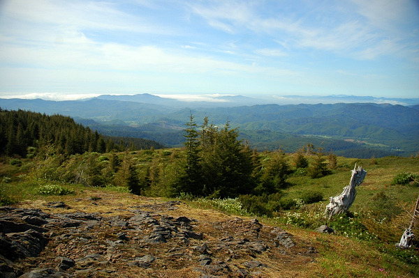 Mount Hebo is a mountain located on the border of Tillamook County and Yamhill County in the U.S. state of Oregon. Mount Hebo is known for being one of the best, most easily accessed viewpoints in the north Oregon Coast, with a 360-degree view from the summit. Mount Hebo is part of the Northern Oregon Coast Range and is located in the Siuslaw National Forest overlooking the Pacific Ocean. Access to the summit is provided by an eight-mile forest service road that begins about a quarter mile from the junction of U.S. Route 101 and Oregon Route 22 in the community of Hebo. Mount Hebo was apparently named by a viewing party seeking a new route to the Willamette Valley that climbed the mountain to get a better view of the terrain. A member of the party said the mountain should be called "Heave…