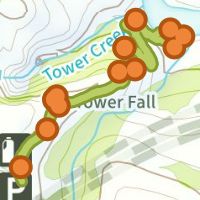 Two horizontal layers of columnar basalt (old lava flows) are located above the Yellowstone River.