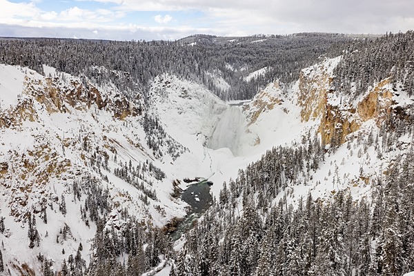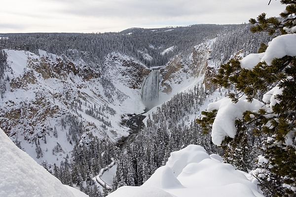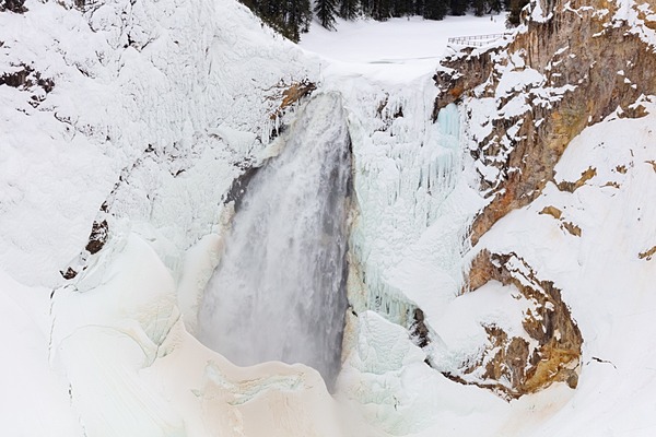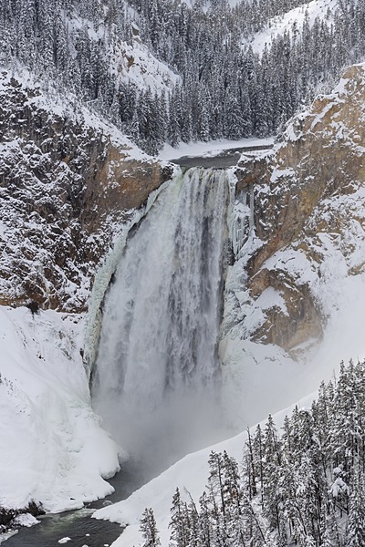 View of Lower Falls in the snow from Lookout Point, Addy Falgoust (NPS) two photographs above.