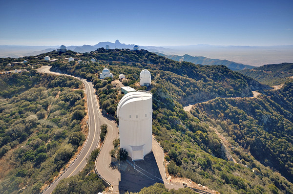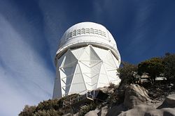 The Kitt Peak National Observatory (KPNO) is a United States astronomical observatory located on Kitt Peak of the Quinlan Mountains in the Arizona-Sonoran Desert on the Tohono O'odham Nation, 88 kilometers (55 mi) west-southwest of Tucson, Arizona. With over twenty optical and two radio telescopes, it is one of the largest gatherings of astronomical instruments in the northern hemisphere.Kitt Peak National Observatory was founded in 1958. It was home to what was the largest solar telescope in the world, and many large astronomical telescopes of the late 20th century in the United States.The observatory was administered by the National Optical Astronomy Observatory (NOAO) from the early 1980s until 2019, after which it was overseen by the National Optical-Infrared Astronomy Research…