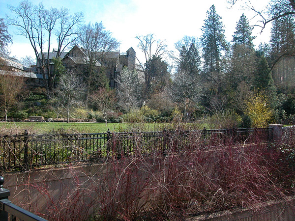 Lithia Park is the largest and most central park of Ashland, Oregon. It consists of 93 acres (380,000 m2) of forested canyonland around Ashland Creek, stretching from the downtown plaza up toward its headwaters near Mount Ashland. Its name originates from lithium oxide (Li2O) or "lithia," which is found in the stream water pumped to the park. The park has two large greens, a bandshell for public musical performances, two duck ponds, a large playground, tennis courts, community buildings and, in winter, an ice skating rink. It also offers picnic areas and miles of hiking trails. The park was listed on the National Register of Historic Places in 1982.