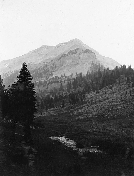 Bannock Peak in the Gallatin Range. View is from Panther Creek Valley. Yellowstone National Park, Wyoming. ca. 1890. Joseph Paxson Iddings (USGS)