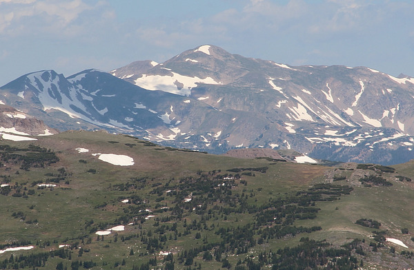 Clark Peak is the highest summit of the Medicine Bow Mountains range of the Rocky Mountains of North America. The prominent 12,960-foot (3,950 m) peak is located in the Rawah Wilderness of Routt National Forest, 6.3 miles (10.1 km) north-northwest (bearing 342°) of Cameron Pass, Colorado, United States, on the drainage divide between Jackson and Larimer counties. Clark Peak is the highest point of Jackson County and the entire drainage basin of the North Platte River.