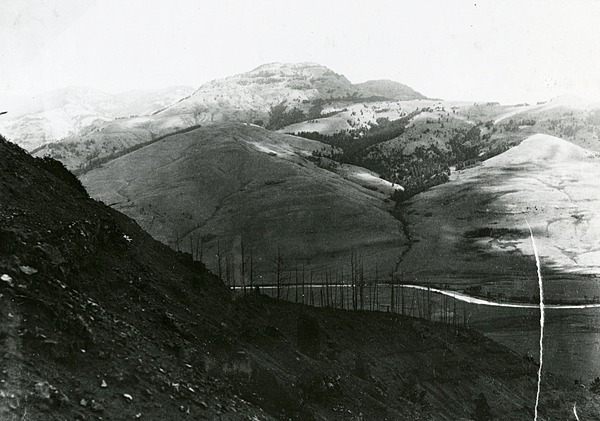 Druid Peak, looking north across the Lamar River from Specimen Ridge. Yellowstone National Park, Wyoming. ca. 1890. Joseph Paxson Iddings (USGS)