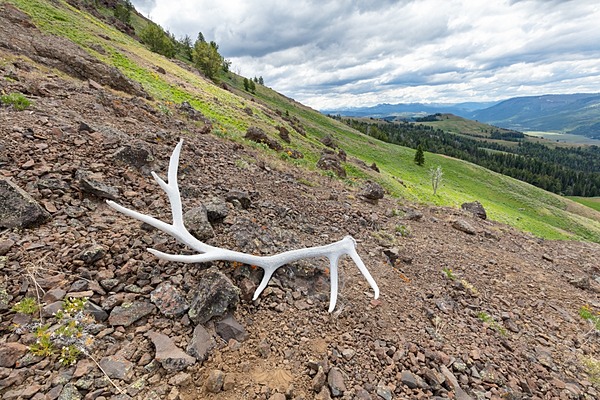Elk antler on Druid Peak hillside, Jacob W. Frank (NPS) photograph above.