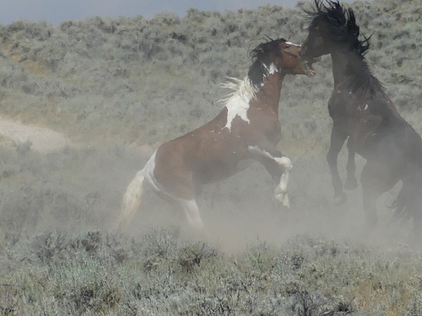 To see the wild horses, pull off onto one of two access roads (dirt tracks) on the north side of US Highway 14/20/16. The first, an unnamed road, is near mile marker 72 and has a lever-latching barbed wire gate you will have to open and close when entering and leaving the access road. The second access road (Whistle Creek Road) is near mile marker 74. No gate here, just a cattle guard, and there is also a small kiosk with some information about the horse management area. The BLM maintains an information with maps and other information here: