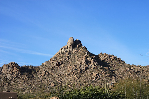 Pinnacle Peak is a granite summit located in Scottsdale, Arizona. The peak rises to an elevation of 3,169 feet (966 m). It is located within the 150-acre (61 ha) Pinnacle Peak Park, operated by the City of Scottsdale Park District. Part of the Sonoran Desert, the park is home to a variety of native desert flora and fauna. Hikers utilize a 1.75 mile trail to explore the area, though rock climbing skills are needed to reach the summit.