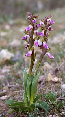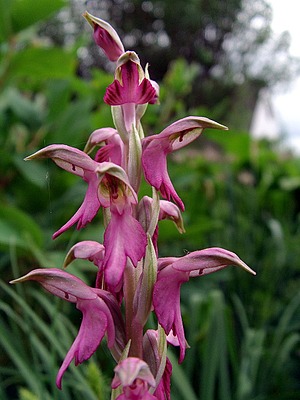 Anacamptis is a genus of flowering plants in the orchid family (Orchidaceae); it is often abbreviated as Ant in horticulture. This genus was established by Louis Claude Richard in 1817; the type species is the pyramidal orchid (A. pyramidalis) and it nowadays contains about one-third of the species placed in the "wastebin genus" Orchis before this was split up at the end of the 20th century, among them many that are of hybrid origin. The genus' scientific name is derived from the Greek word anakamptein, meaning "to bend backwards". These terrestrial orchids occur on grasslands, limestone or chalk deposits, or on dunes in Eurasia, from the Mediterranean region to Central Asia.