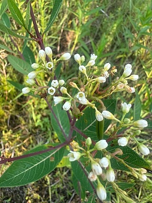 Apocynum, commonly known as dogbane or Indian hemp, is a small genus of the flowering plant family Apocynaceae. Its name comes from Ancient Greek ἀπόκυνον apókunon, from ἀπο- apo- "away" and κύων kúōn "dog", referring to dogbane (Cionura erecta), which was used to poison dogs. The genus is native to North America, temperate Asia, and southeastern Europe.Apocynum species are used as food plants by the larvae of some Lepidoptera species, including the mouse moth and the queen butterfly.