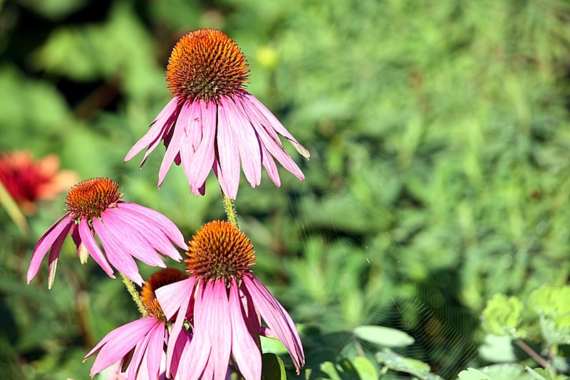 Echinacea purpurea (eastern purple coneflower, purple coneflower, hedgehog coneflower, or echinacea) is a North American species of flowering plant in the sunflower family. It is native to parts of eastern North America and present to some extent in the wild in much of the eastern, southeastern and midwestern United States as well as in the Canadian Province of Ontario. It is most common in the Ozarks and in the Mississippi/Ohio Valley. Its habitats include dry open woods, prairies and barrens.