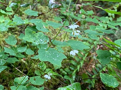Vancouveria () is a small group of plants belonging to the barberry family described as a genus in 1834. The three plants in this genus are known generally as inside-out flowers, and they are endemic to the West Coast of the United States. The genus was named after George Vancouver, English navigator and explorer. SpeciesVancouveria chrysantha Greene – golden inside-out flower – California (Siskiyou + Del Norte Counties), Oregon (Curry + Josephine Counties) Vancouveria hexandra (Hook.) C.Morren & Decne. – white inside-out flower – northwestern California (from Napa to Siskiyou), western Oregon, southwestern Washington Vancouveria planipetala Calloni – redwood inside-out flower – California as far south as Monterey County, southwestern Oregon