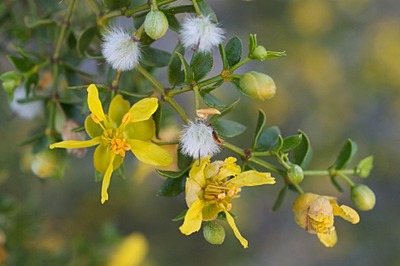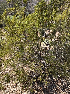 Larrea is a genus of flowering plants in the caltrop family, Zygophyllaceae. It contains five species of evergreen shrubs that are native to the Americas. The generic name honours Bishop Juan Antonio Hernández Pérez de Larrea, a patron of science. South American members of this genus are known as jarillas and can produce fertile interspecific hybrids. One of the more notable species is the creosote bush (L. tridentata) of the southwestern United States and northwestern Mexico. The King Clone ring in the Mojave Desert is a creosote bush clonal colony estimated to be about 11,700 years old.