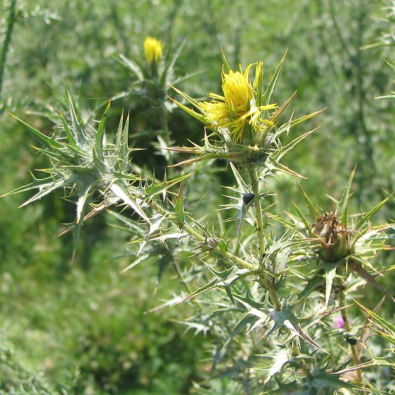 Carthamus lanatus is a species of thistle known as woolly distaff thistle, downy safflower or saffron thistle. It is closely related to safflower, which is in the same genus. This annual plant is a native of the Mediterranean Basin, but it is familiar in other places where it was introduced and has become a noxious weed, such as in parts of North America and southern Australia with similar climates.