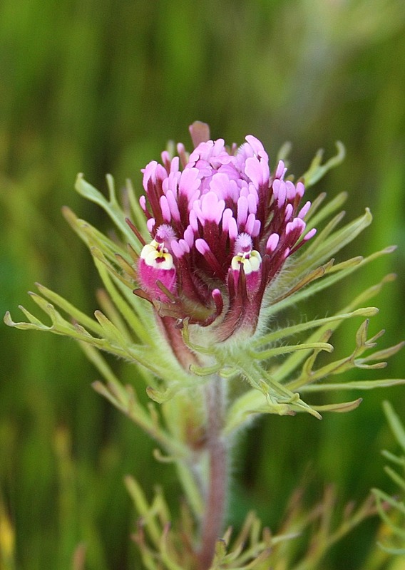 Castilleja exserta (formerly Orthocarpus purpurascens) is a species of plant in the genus Castilleja which includes the Indian paintbrushes. Its common names include purple owl's clover, escobita, and exserted Indian paintbrush.This species is native to the Southwestern United States in various habitats of California, Arizona, and New Mexico; and to Northwestern Mexico. It is an introduced species in Hawaii.