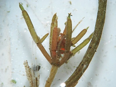 Chara is a genus of charophyte green algae in the family Characeae. They are multicellular and superficially resemble land plants because of stem-like and leaf-like structures. They are found in freshwater, particularly in limestone areas throughout the northern temperate zone, where they grow submerged, attached to the muddy bottom. They prefer less oxygenated and hard water and are not found in waters where mosquito larvae are present. They are covered with calcium carbonate deposits and are commonly known as stoneworts. Cyanobacteria have been found growing as epiphytes on the surfaces of Chara, where they may be involved in fixing nitrogen, which is important to plant nutrition.