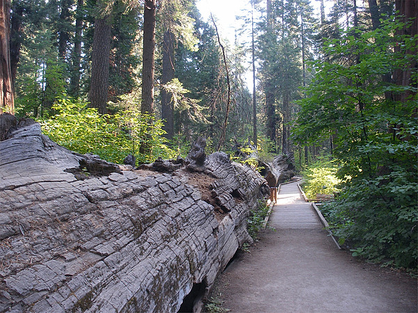 More than 7m in diameter, the Father of the Forest was a largest Giant Sequoia that fell in the North Grove several centuries ago. It has been a popular attraction among visitors since the 1850s, many of whom have been photographed on top of or poking out from the hollow trunk.