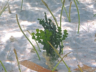 Halimeda is a genus of green macroalgae. The algal body (thallus) is composed of calcified green segments. Calcium carbonate is deposited in its tissues, making it inedible to most herbivores. However one species, Halimeda tuna, was described as pleasant to eat with oil, vinegar, and salt.As in other members of the order Bryopsidales, individual organisms are made up of single multi-nucleate cells. Whole meadows may consist of a single individual alga connected by fine threads running through the substrate.Halimeda is responsible for distinctive circular deposits in various parts of the Great Barrier Reef on the north-east coast of Queensland, Australia. Halimeda beds form in the western or lee side of outer shield reefs where flow of nutrient-rich water from the open sea allows them to…