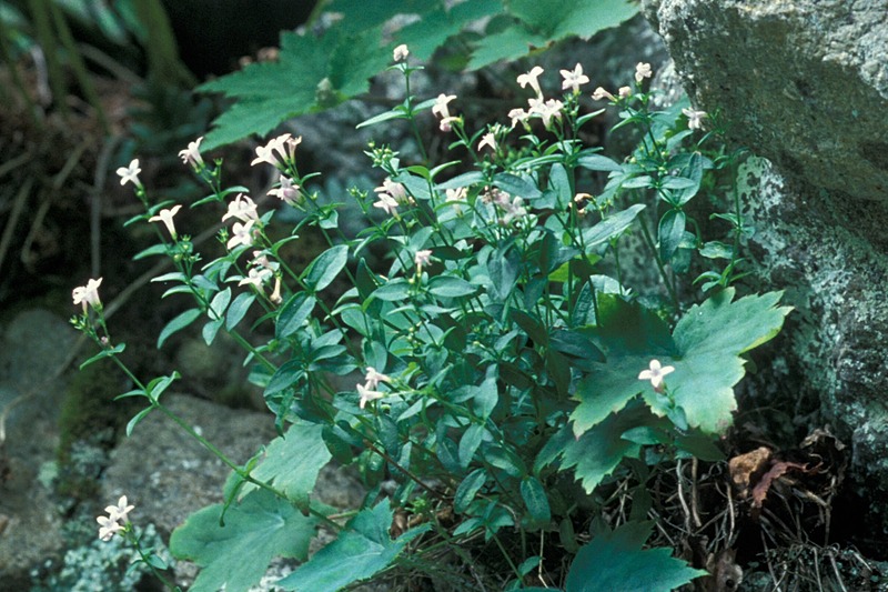 Houstonia purpurea (formerly Hedyotis purpurea) is a species of flowering plant in the coffee family known by the common names Venus's pride, woodland bluet, and purple bluet. It is native to the eastern United States from eastern Texas and Oklahoma east to Florida and Pennsylvania, with scattered populations in Nebraska, Iowa, Michigan, New York State and New England. There are three varieties of this species. The rarest, var. montana (Roan Mountain bluet) is a federally listed endangered species of the United States. It occurs only in the southern Appalachians along the border between Tennessee and North Carolina. It is named for Roan Mountain, one of a very few mountain peaks where it grows.