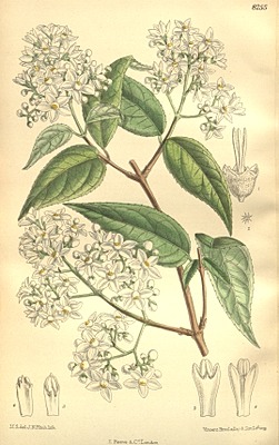 Deutzia ( or ) is a genus of about 60 species of flowering plants in the family Hydrangeaceae, native to eastern and central Asia (from the Himalayas east to Japan and the Philippines), and Central America and also Europe. By far the highest species diversity is in China, where 50 species occur. The species are shrubs ranging from 1–4 m (3 ft 3 in–13 ft 1 in) in height. Most are deciduous, but a few subtropical species are evergreen. The leaves are opposite, simple, with a serrated margin. The flowers are produced in panicles or corymbs; they are white in most species, sometimes pink or reddish. The fruit is a dry capsule containing numerous small seeds. Identification of the species is very difficult, requiring often microscopic detail of the leaf hairs and seed capsule structure. Deutzia…