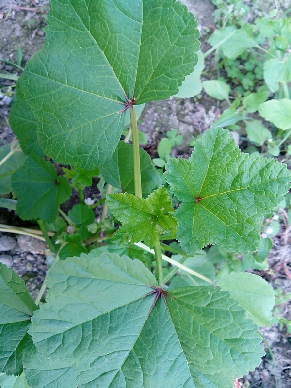 Malva parviflora is an annual or perennial herb that is native to Northern Africa, Europe and Asia and is widely naturalised elsewhere. Common names include cheeseweed, cheeseweed mallow, Egyptian mallow, least mallow, little mallow, mallow, marshmallow, small-flowered mallow, small-flowered marshmallow and smallflower mallow.M. parviflora leaf extracts possess anti-inflammatory and antioxidant activities. It has a decumbent or erect habit, growing up to 50 cm in height. The broad leaves have 5 to 7 lobes and are 8 to 10 cm in diameter. It has small white or pink flowers with 4 to 6 mm long petals.