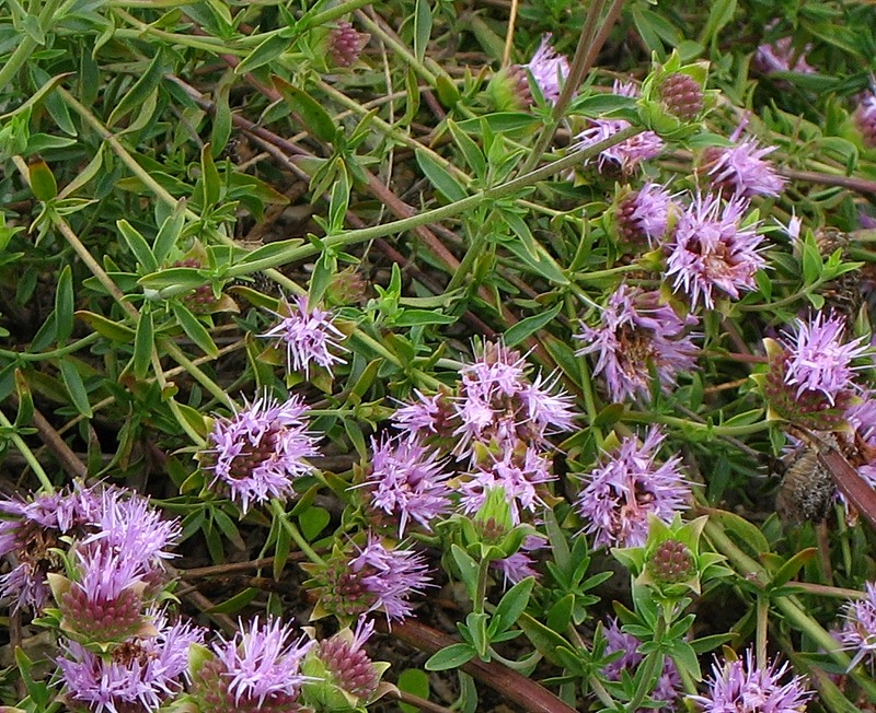 Monardella odoratissima (mountain coyote mint, mountain beebalm, mountain monardella or mountain pennyroyal) is a perennial flowering plant which grows in mountain forests and sagebrush scrub. It is a member of the mint family (Lamiaceae). It has the minty odor characteristic of this family.