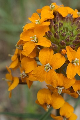 Erysimum, or wallflower, is a genus of flowering plants in the cabbage family, Brassicaceae. It includes more than 150 species, both popular garden plants and many wild forms. The genus Cheiranthus is sometimes included here in whole or in part. Erysimum has since the early 21st century been ascribed to a monogeneric cruciferous tribe, Erysimeae, characterised by sessile, stellate (star-shaped) and/or malpighiaceous (two-sided) trichomes, yellow to orange flowers and multiseeded siliques.
