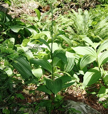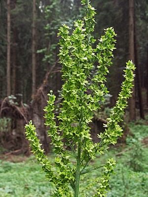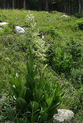 Veratrum is a genus of flowering plants in the family Melanthiaceae. It occurs in damp habitats across much of temperate and subarctic Europe, Asia, and North America.Veratrum species are vigorous herbaceous perennials with highly poisonous black rhizomes, and panicles of white or brown flowers on erect stems. In English they are known as both false hellebores and corn lilies. However, Veratrum is not closely related to hellebores, corn, or lilies.
