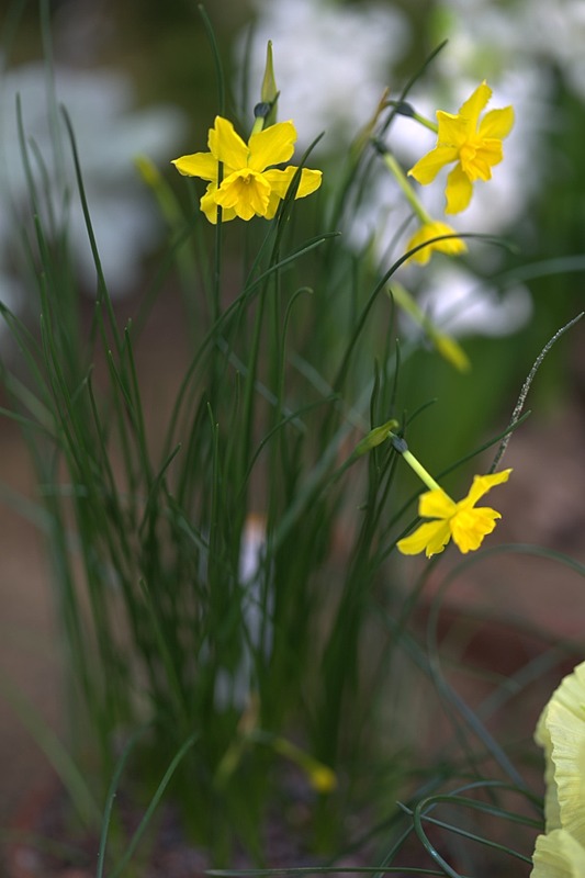 Narcissus jonquilla, commonly known as jonquil or rush daffodil, is a bulbous flowering plant, a species of the genus Narcissus (daffodil) that is native to Spain and Portugal but has now become naturalised in many other regions: France, Italy, Turkey, the former Yugoslavia, Madeira, British Columbia in Canada, Utah, Illinois, Minnesota, Ohio, and the southeastern United States from Texas to Maryland. Narcissus jonquilla bears long, narrow, rush-like leaves (hence the name "jonquil", Spanish junquillo, from the Latin juncus = "rush"). In late spring it bears heads of up to five scented yellow or white flowers. It is a parent of numerous varieties within Division 7 of the horticultural classification. Division 7 in the Royal Horticultural Society classification of Narcissus includes N.…