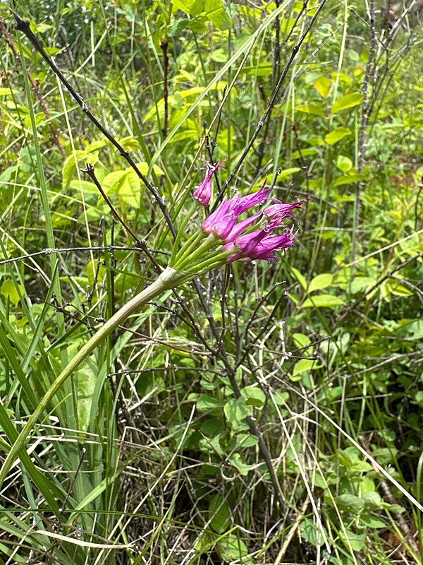Allium brevistylum is a plant species native to the western United States. It grows in meadows and along stream banks high in the mountains of Colorado, Utah, Wyoming, Montana and Idaho, at elevations of 2200–3400 m.Allium brevistylum produces a thick, Iris-like underground rhizome, at the ends of which are bulbs up to 3 cm in diameter. Scapes are up to 60 cm tall, flattened and with narrow wings. Flowers are urn-shaped, up to 15 mm long; tepals pink with thick midribs; anthers and pollen yellow.