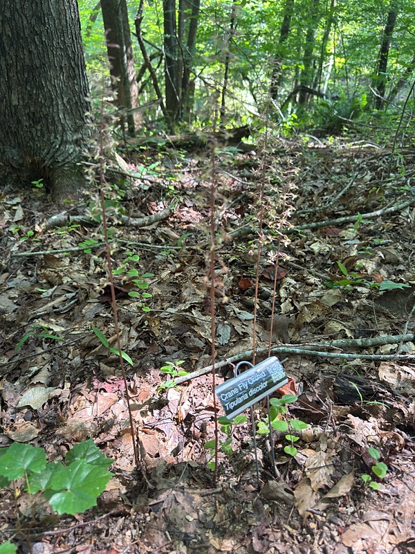 Tipularia discolor, the crippled cranefly or crane-fly orchid, is a perennial terrestrial woodland orchid, a member of the family Orchidaceae. It is the only species of the genus Tipularia found in North America. It occurs in the southeastern United States from Texas to Florida, the range extending north into the Ohio Valley and along the Appalachians as far north as the Catskills. There are also isolated populations in Massachusetts and in the Great Lakes region.Tipularia discolor grows a single leaf in September that disappears in the spring. The leaf top is green, often with dark purple spots. The leaf underside is a striking purple color. The flower blooms in mid-July to late August. The roots are a connected series of edible corms. They are starchy and almost potato-like. The plant…