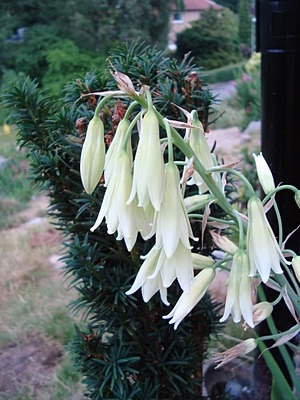 Ornithogalum is a genus of perennial plants mostly native to southern Europe and southern Africa belonging to the family Asparagaceae. Some species are native to other areas such as the Caucasus. Growing from a bulb, species have linear basal leaves and a slender stalk, up to 30 cm tall, bearing clusters of typically white star-shaped flowers, often striped with green. The common name of the genus, Star-of-Bethlehem, is based on its star-shaped flowers, after the Star of Bethlehem that appears in the biblical account of the birth of Jesus. The number of species has varied considerably, depending on authority, from 50 to 300.