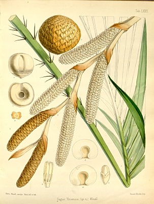 Metroxylon is a genus of monoecious flowering plants in the Arecaceae (palm) family, consisting of seven species. They are native to Western Samoa, New Guinea, the Solomon Islands, the Moluccas, the Carolines and Fiji in a variety of habitats, and cultivated westward to Thailand and Malaya.The name is formed from the combination of two Greek words, metra - "womb", commonly translated as "heart" in this context and xylon - "wood", in allusion to the large proportion of pith contained in the plant.