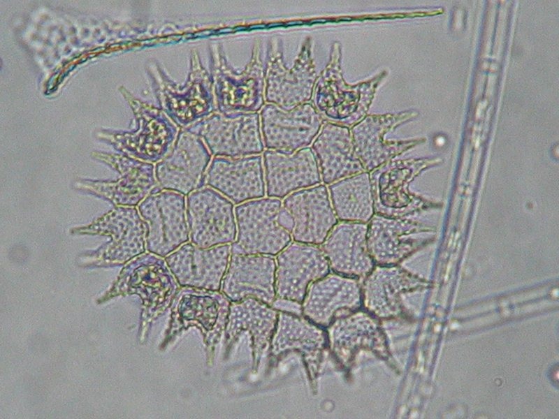 Pediastrum is a genus of green algae, in the family Hydrodictyaceae. It is a photoautotrophic, nonmotile coenobial (fixed number of cells) green algae that inhabits freshwater environments.