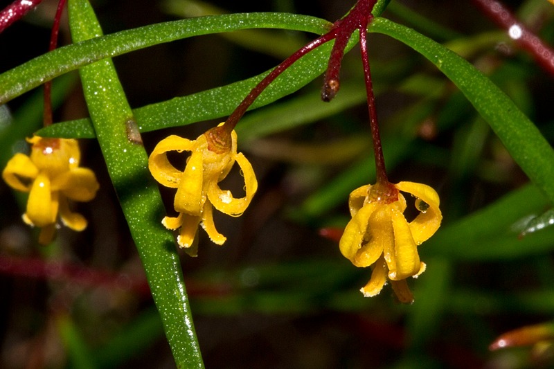 Persoonia nutans, commonly known as the nodding geebung, is a plant in the family Proteaceae and is endemic to part of the Sydney region in New South Wales. It is an erect to spreading shrub with linear leaves and yellow flowers on down-turned pedicels.