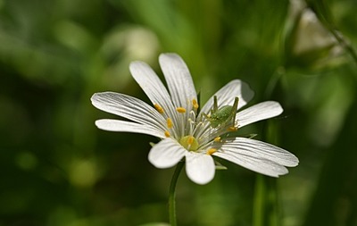Cerastium is a genus of annual, winter annual, or perennial plants belonging to the family Caryophyllaceae. They are commonly called mouse-ear chickweed. Species are found nearly worldwide but the greatest concentration is in the northern temperate regions. There are about 200 species. A number are common weeds in fields and on disturbed ground. Cerastium species are used as food plants by the larvae of some Lepidoptera species including Coleophora chalcogrammella (which feeds exclusively on Cerastium arvense) and Coleophora striatipennella (which has been recorded on Cerastium fontanum).