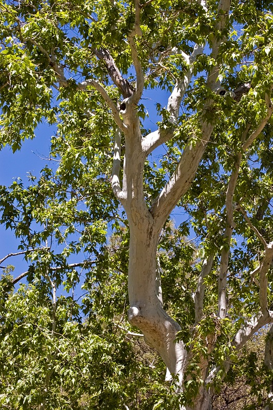 Platanus wrightii, the Arizona sycamore, is a sycamore tree native to Arizona and New Mexico with its range extending south into the Mexican states of Sonora, Chihuahua, and Sinaloa.The tree is a large deciduous tree, growing up to 82 ft (25 m).