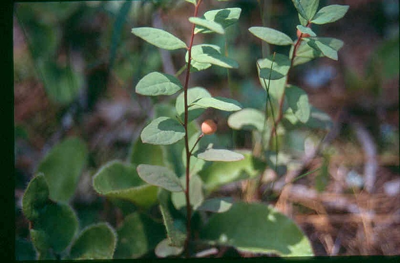 Geocaulon is a monotypic genus of flowering plants in the family Santalaceae containing the single species Geocaulon lividum, which is known by the common names northern comandra and false toadflax. It is native to northern North America, where it is common and widespread from Alaska to Newfoundland and into the northernmost contiguous United States.This plant is a perennial herb which grows from rhizomes located in the humus. It produces stems up to 30 centimetres (12 inches) tall and inflorescences with two or three greenish or purplish flowers, one of which is generally perfect while the others are male. The fruit is an orange drupe containing one seed. This plant grows as a hemiparasite on other species. It produces haustoria which tap the roots of host plants such as spruce, pine,…