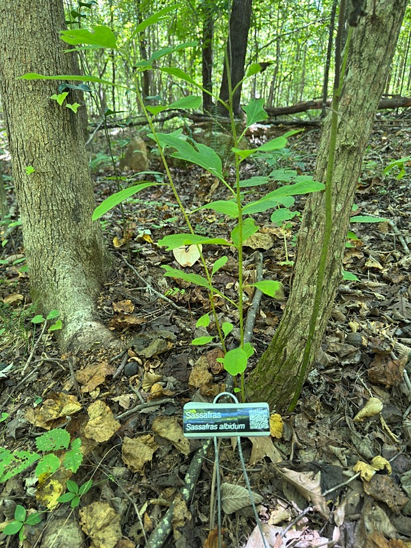 Sassafras albidum (sassafras, white sassafras, red sassafras, or silky sassafras) is a species of Sassafras native to eastern North America, from southern Maine and southern Ontario west to Iowa, and south to central Florida and eastern Texas. It occurs throughout the eastern deciduous forest habitat type, at altitudes of up to 1,500 m (5000 feet) above sea level. It formerly also occurred in southern Wisconsin, but is extirpated there as a native tree.