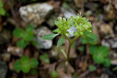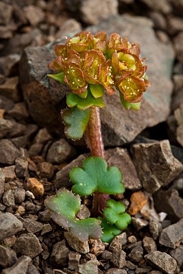 Chrysosplenium (golden saxifrage or golden-saxifrage) is a genus of 57 species of flowering plants in the family Saxifragaceae. Species can be found throughout the arctic and northern temperate parts of the Northern Hemisphere, with the highest species diversity in eastern Asia; two species are found disjunctly in South America.They are soft herbaceous perennial plants growing to 20 centimeters tall, typically growing in wet, shady locations in forests. The leaves are rounded, palmately veined, with a lobed margin; they may be arranged either alternately or opposite, depending on the species. The flowers are small, yellow or yellowish-green, with four petals; they are produced in small clusters at the apex of the shoots surrounded by leafy bracts. Most of the growth and flowering is in…