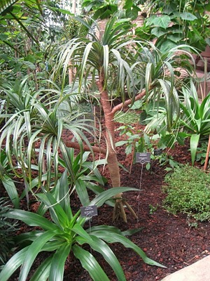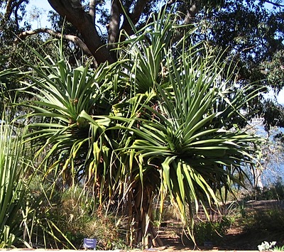 Pandanus is a genus of monocots with some 750 accepted species. They are palm-like, dioecious trees and shrubs native to the Old World tropics and subtropics. The greatest number of species are found in Madagascar and Malesia. Common names include pandan (), screw palm, and screw pine. They are classified in the order Pandanales, family Pandanaceae.
