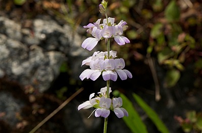 Collinsia is a genus of about 20 species of annual flowering plants, consisting of the blue eyed Marys and the Chinese houses. It was traditionally placed in the snapdragon family Scrophulariaceae, but following recent research in molecular genetics, it has now been placed in a much enlarged family Plantaginaceae. The genus is endemic to North America, and is named in honor of Zacchaeus Collins, a Philadelphia botanist of the late eighteenth/early nineteenth century. Many of the 20 species may be found in California. Two species, Collinsia parviflora (smallflower blue eyed Mary) and Collinsia violacea (violet blue eyed Mary), had medicinal uses among American Indian peoples. Species include: