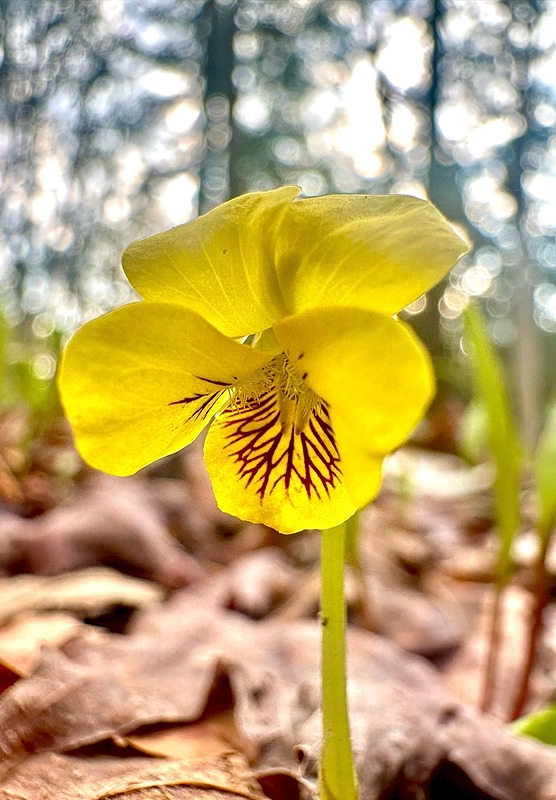 Viola rotundifolia, common name roundleaf yellow violet, is a plant species of the genus Viola. It is found in mesic habitat areas of the eastern United States and Canada; from Tennessee and Kentucky south to Georgia. It grows 2 to 4 inches tall with leaves and flowers on separate stalks.