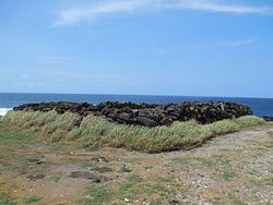 Ka Lae (Hawaiian: the point), also known as South Point, is the southernmost point of the Big Island of Hawaii and of the 50 United States. The Ka Lae area is registered as a National Historic Landmark District under the name South Point Complex. The area is also known for its strong ocean currents and winds and is the home of a wind farm.